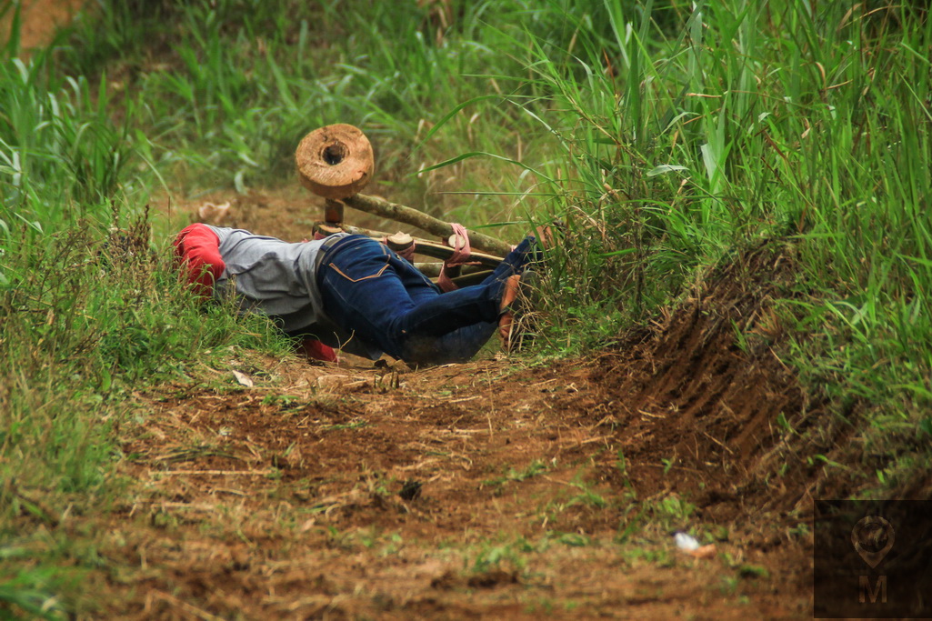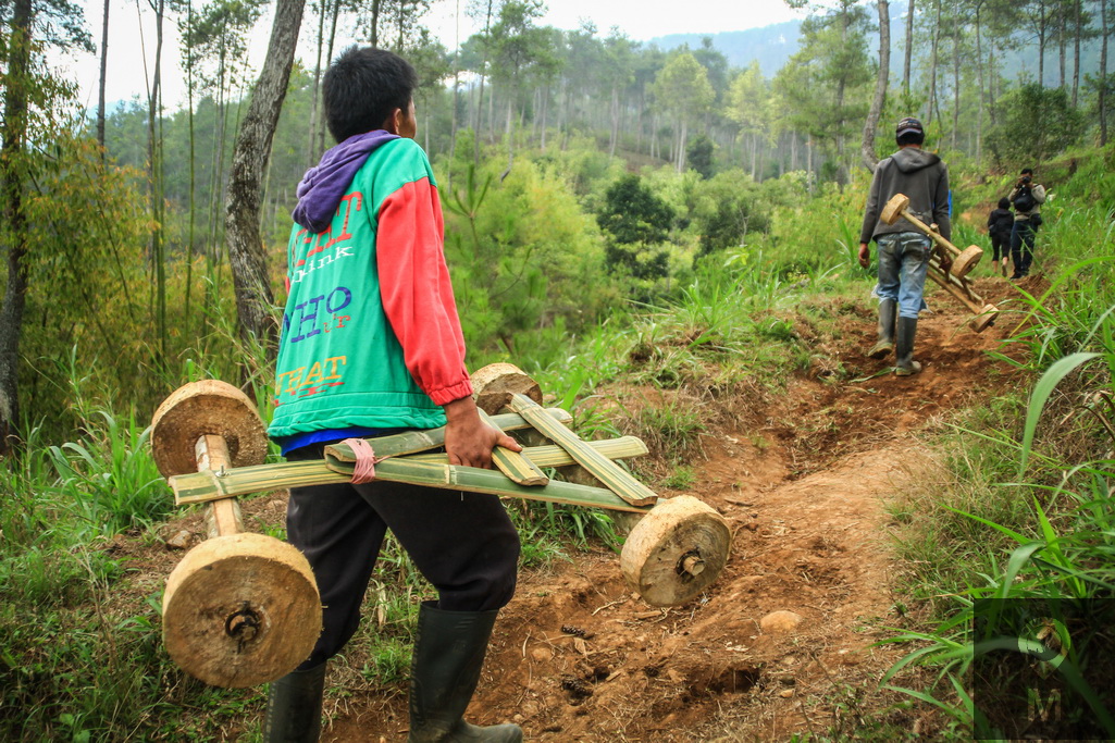 Di tengah perkebunan hutan pinus yang masih asri permainan tradisional ini digelar hanya sorak sorai penonton yang menghangatkan suasana.