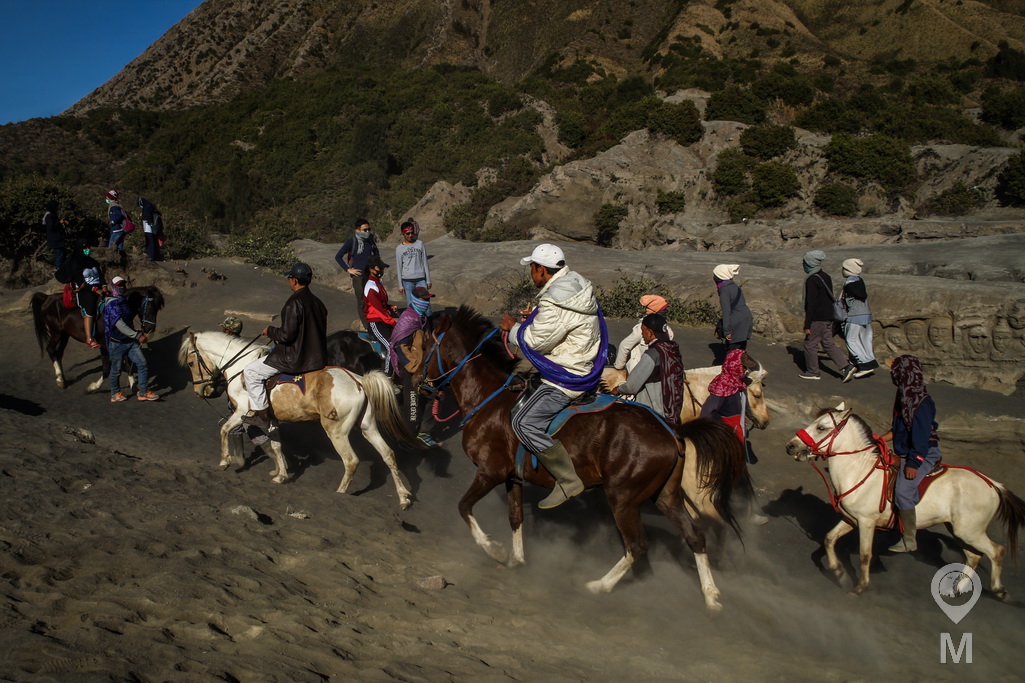 Untuk yang tidak kuat berjalan kaki bisa memanfaatkan jasa ini dengan merogoh kocek kurang lebih tiga ratus ribu rupiah atau sesuai kesepatakan wisatawan tidak perlu repot-repot berjalan jarak jauh hanya perlu mendaki sedikit untuk sampai tepat di puncak atau bibir kawah gunung bromo.