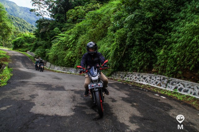 Hijau nya perkebunan teh serta lebatnya hutan ditambah jalanan yang menanjak dan menurun serta berliku kami lalui, Beruntung jalanan aspal mulus menemani kami disepanjang perjalanan hanya di titik tertentu saja jalanan yang sedikit rusak.