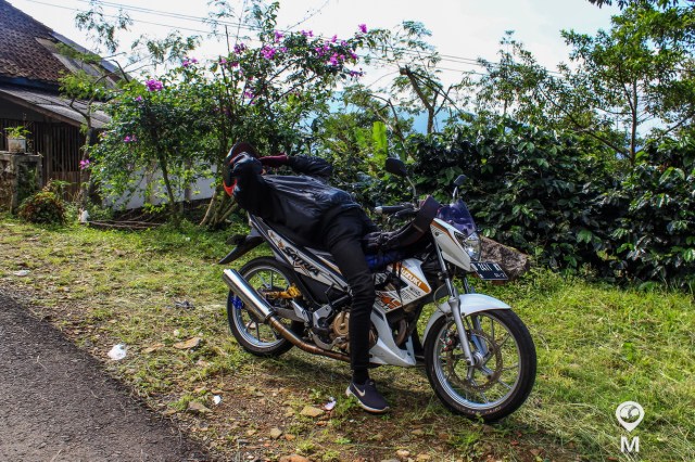 Sesekali kami berhenti sejenak untuk beristirahat sembari berfoto menikmati keindahan air terjun yang terlihat dari kejauhan. Sedikit saran untuk yang akan melalui jalan ini alangkah lebih baik mengecek tangki bensin anda sebelum berangkat karena disepanjang rute ini jangan berharap SPBU mudah didapatkan walaupun dibeberapa perkampungan ada yang menjual bensin eceran serta kita harus meningkatkan kewaspadaan lebih karena jalanan yang berkelok, curam dan sedikit sepi.