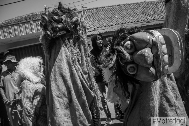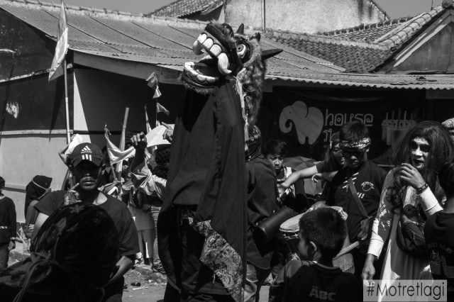 Irama tabuhan instrumen etnik musik tradisional sunda mengiringi para pemain pertunjukan dilakukan sembari berjalan yang mana kemudian membuat para pemain dan reak bergerak tanpa kehendak sehingga gerakan tubuh dalam tarian tampak begitu natural sesuai ruh leluhur yang merasuki jiwa pemain.
