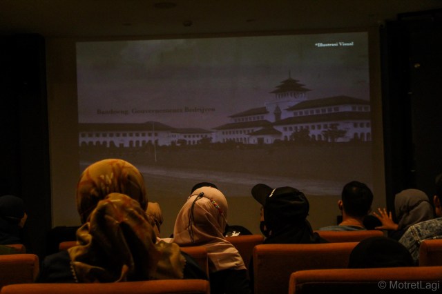 Sejumlah penyandang disabilitas netra ditemani teman berbisik (pembaca visual) menyaksikan film Imperfect saat kegiatan Bioskop Harewos di Museum Gedung sate, Jalan Diponegoro, Kota Bandung, Rabu (30/3/2022).