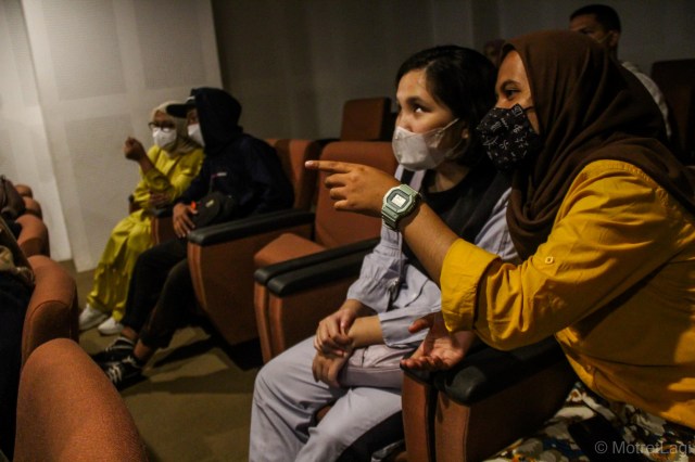Bioskop Harewos (berbisik) tersebut diikuti oleh 10 penyandang disabilitas netra dan 10 teman bisik (visual reader). Kegiatan itu bertujuan untuk memberikan sensasi menonton film bioskop kepada penyandang disabilitas netra dengan cara mempertemukan orang baru di luar lingkungannya, sekaligus memperingati Hari Film Nasional 2022.