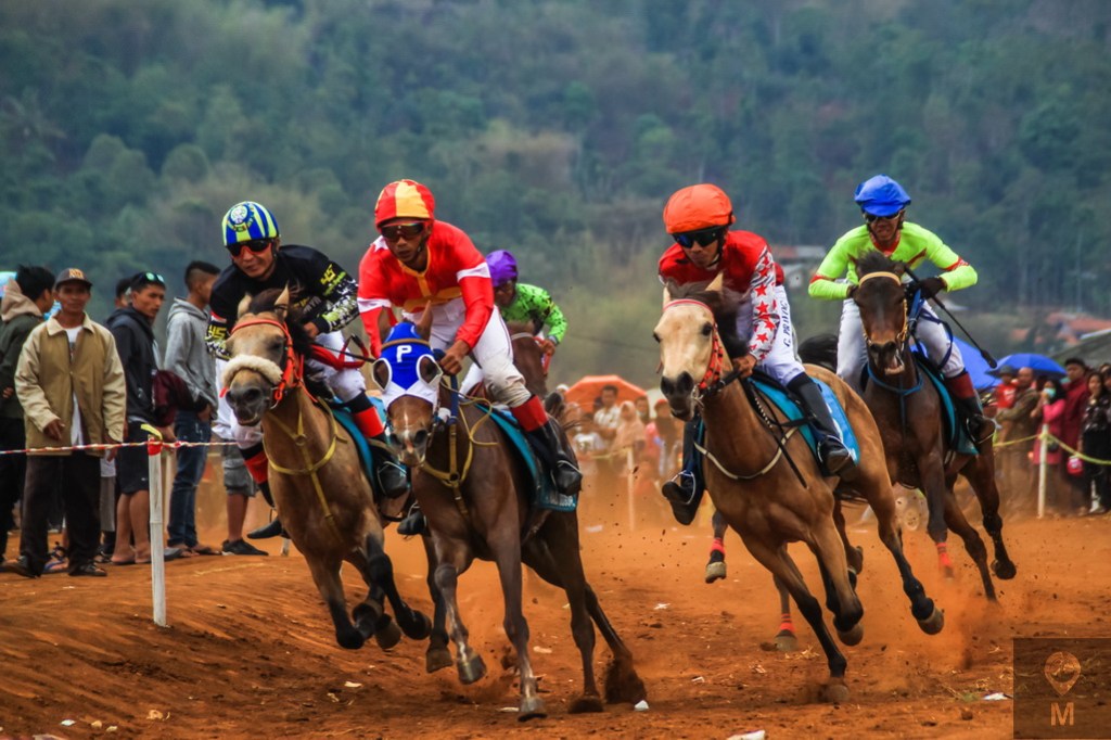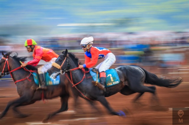 “Eaaa…. wooo… hoooo….” Riuh sorakan penonton saat menyaksikan para joki andalannya memacu kuda dengan kecepatan tinggi, Walaupun lintasan sempat di guyur hujan beberapa saat tak menyurutkan antusias masyarakat untuk terus menyaksikan jalannya balapan.